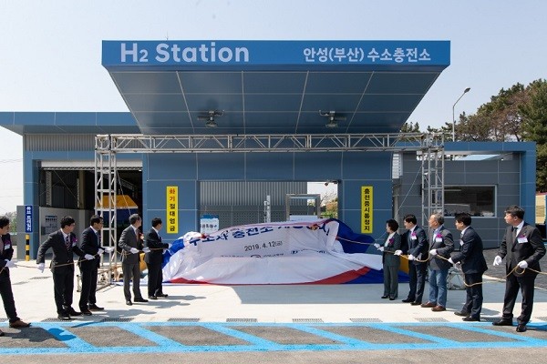 | ▲지난 4월 12일 경부고속도로 안성휴게소에서 수소충전소 개장행사가 열렸다.(사진=국토교통부) |