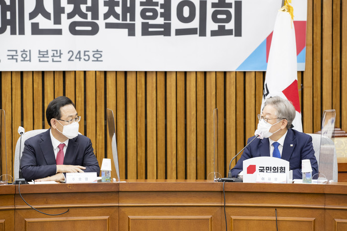[로컬세계 고기훈 기자]이재명 경기도지사는 6일 서울 여의도 국회 본관에서 ‘국민의힘-경기도 예산정책협의회’을 열고 기본주택·기본대출·기본소득토지세 도입 등 도가 추진하는 경제활성화 정책에 대한 국회차원의 협조를 요청했다.