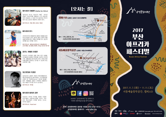 아프리카 페스티벌 세부 프로그램 및 일정 문의는 금정문화재단 홈페이지, 글로벌사업팀으로 연락하면 자세히 안내받을 수 있다.