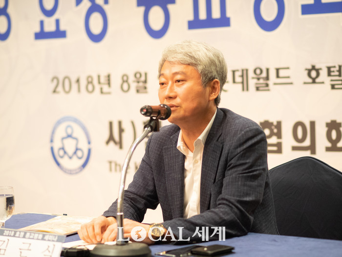 ▲'2018 효정종교평화 세미나'에서 김형석 전 통일부 차관이 발제를 하고 있다. 김형석 전(前) 통일부 차관은 “종교는 이질화된 남북한 정체성 간극을 좁혀주는 통로의 역할을 할 수 있다”며 “북한 체제의 특성상 북한 내 종교의 실질적 확산은 다소 어려울 수 있으나, 여러 종단이 앞장서 북한과 교류하며 민간교류사업이 지속적으로 확산될 수 있는 물꼬를 트는 게 필요하다”는 의견을 밝혔다.(사진=김연주 인턴기자) |
