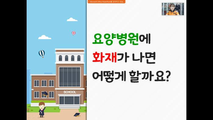 [로컬세계 맹화찬 기자]부산 남부소방서는 포스트 코로나(Post-COVID)로 일상생활은 물론 대면교육까지 힘들어 지면서 화재 등 재난위기 상황에서 효율적인 초기대응을 위한 소방안전교육 공백 최소화를 위해 지난 8일부터 요양병원을 시작으로 ‘온라인’비대면 소방안전교육을 진행하고 있다고 17일 밝혔다.