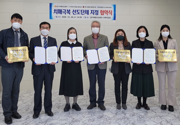 [로컬세계 맹화찬 기자]부산 중구(구청장 최진봉) 치매안심센터는 지난 28일 부산디지털고등학교, 중구종합사회복지관, 봉생중구노인복지센터 3개소를 치매극복 선도단체로 지정하고 업무협약 및 협약식을 개최했다.