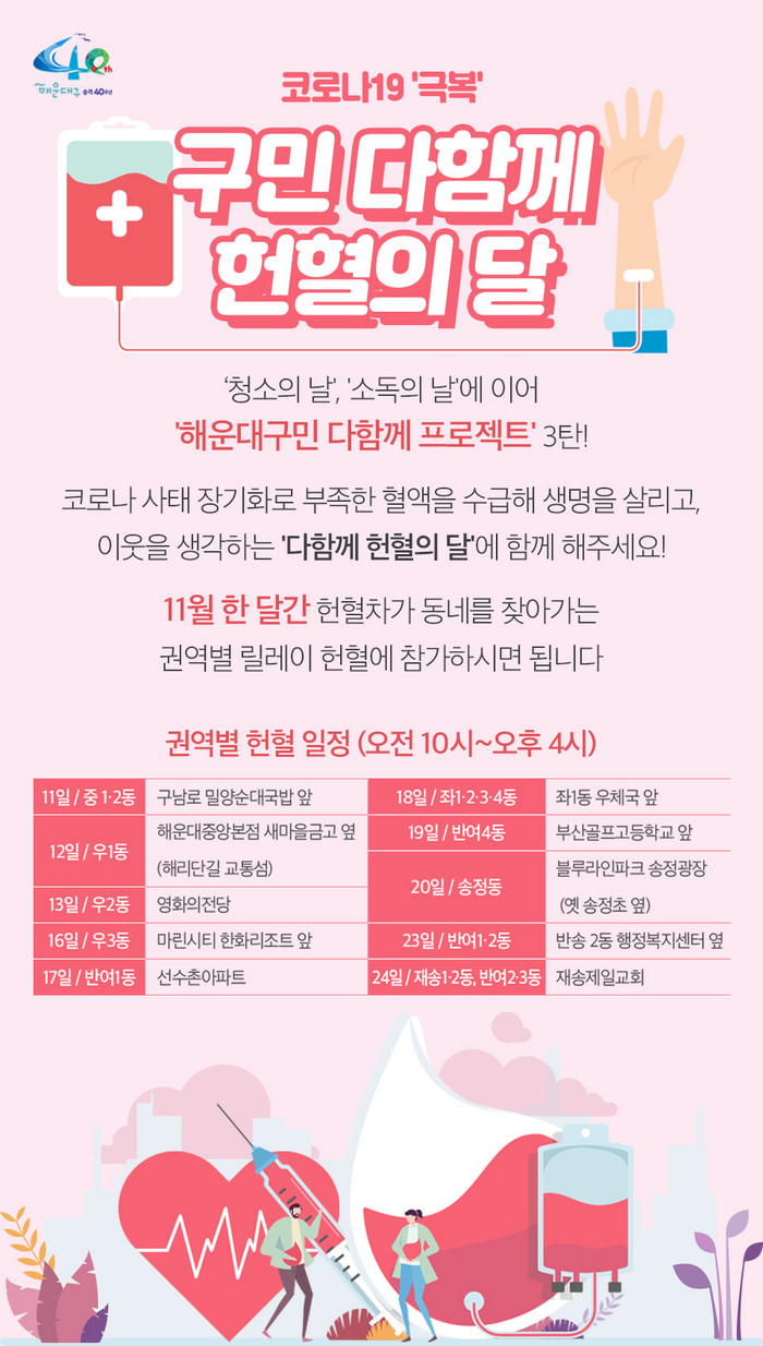 한편, 해운대구는 전국 지자체 최초로 6월 14일을 ‘해운대구민 헌혈의 날’로 지정해 올해 기념행사를 열기도 했다.