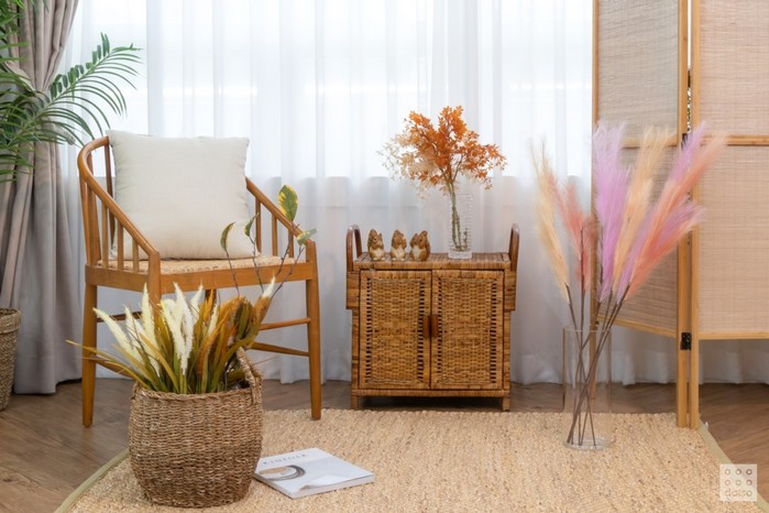 먼저, 집안 곳곳에서 가을 정취를 느낄 수 있는 다양한 조화가 마련됐다. 파스텔톤의 ‘코스모스’와 선명한 붉은 색을 띠는 ‘거베라’는 화병에 꽂아 침대 탁자나 거실 한쪽에 두기만 해도 계절감을 느낄 수 있다. 가을을 대표하는 ‘단풍나무 가지’, ‘은행나무 부쉬’는 나무 꼬임 형태의 ‘자연 소재 꽃바구니’에 담아 현관 입구에 두면 분위기 있는 연출이 가능하다.