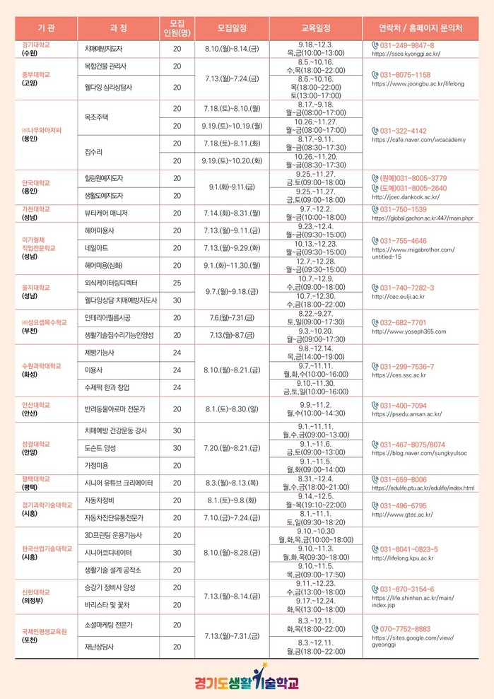 하반기 학습자 모집 관련 자세한 사항은 경기도 지식 홈페이지를 참고하거나 경기도 평생교육과로 문의하면 된다.