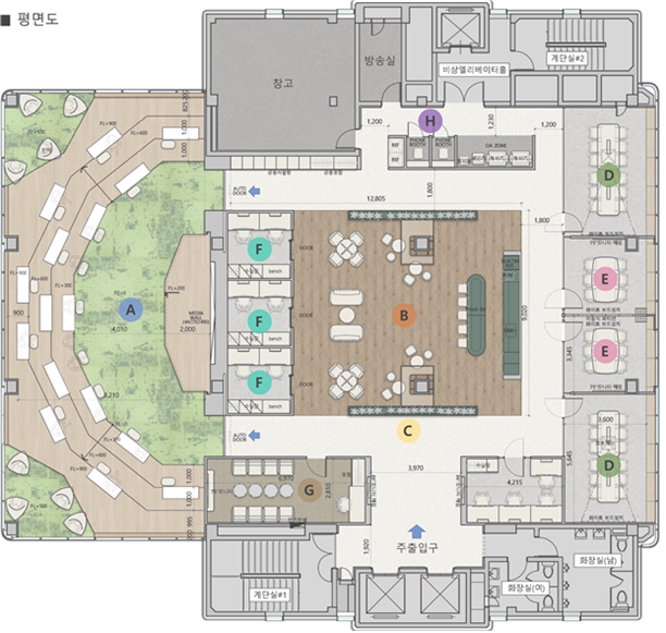 ▲부산시는 4일 오후 산업은행 동남권지역본부에서 '케이디비(KDB) 넥스트원(NextONE) 부산'을 개소한다. 평면도. 부산시 제공 |