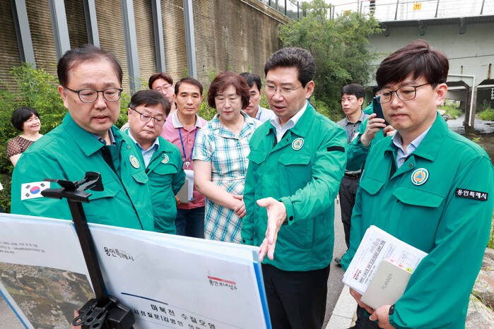 이상일 시장은 “하천 수량이 부족한 갈수기에 하천에서 냄새가 나고, 인근에서 폐수가 하천으로 유입되는 것 같다는 이야기도 나와 확인차 현장을 방문했다”며 “환경감시원을 배치해 폐수 유출 여부를 상시 확인하는 체계를 구축하고 있는데 활동에 소홀함이 없도록 노력하겠다”고 말했다.