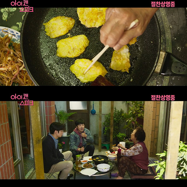 영화 '아이 캔 스피크'의 '꽃 반지 끼고' 뮤직비디오에서 추석을 맞아 나문희가 생선전을 부치는 가운데 이제훈, 성유빈이 옹기종기 둘러앉은 장면이 공개됐다.