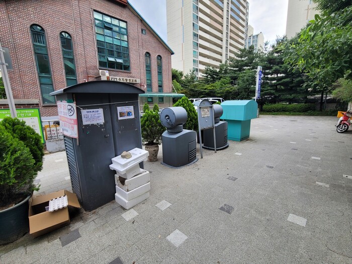 ▲ 수지구의 한 공동주택단지 내에 설치된 자동집하시설 투입구 모습. 용인시 제공 |
