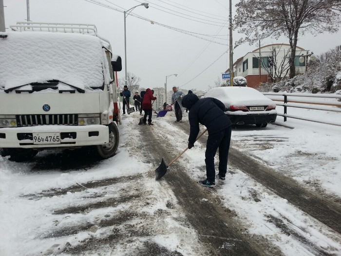 이른 새벽 제설활동에 참여한 한 시민은 “이웃 어린이들을 생각하는 마음에 인근 골목길에 쌓인 눈까지 치우는 중이다. 안전하게 길을 다닐 아이들을 생각하니 마음이 놓인다” 라며 이웃을 배려하는 마음을 보였다.