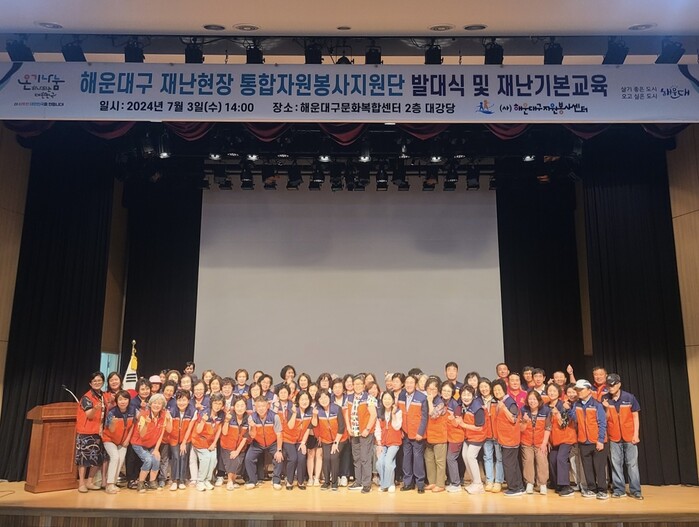 [로컬세계 부산=맹화찬 기자]부산해운대구자원봉사센터는 지난 3일 해운대구문화복합센터에서 해운대구 재난현장 통합자원봉사지원단 발대식과 재난 기본교육을 개최하고, 본격적 활동에 들어갔다.