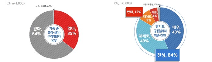 경기도가 ‘신규 공공일자리를 확충하는 것’에 대해서는 84%가 찬성했다. 또 도가 코로나19 피해기업에게 ‘기업안정화를 위한 지원’을 하는 것에 대해서도 도민 대다수(90%)가 찬성했다.