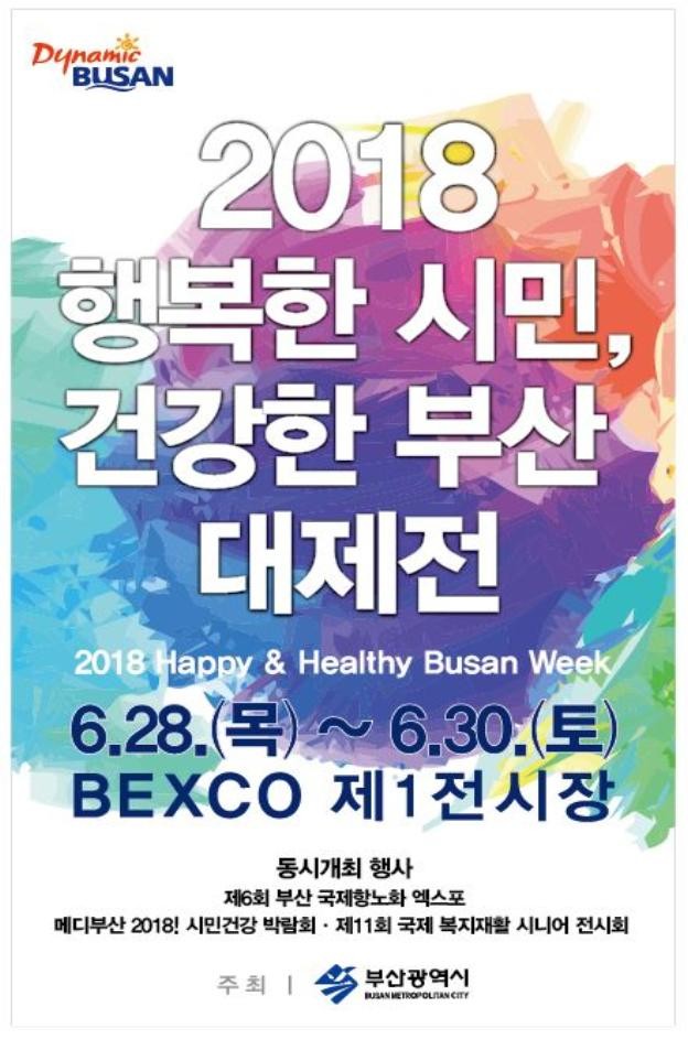 이번 행사는 '제6회 부산국제항노화엑스포', '메디부산 2018! 시민건강박람회', '제11회 국제 복지‧재활‧시니어 전시회', '신중년 인생 3모작 한마당' 등 총 4개 전시회가 동시에 참여한다.