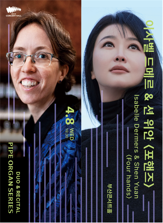 첫 공연은 4월 8일 오후 7시 30분 열린다. 오르가니스트 이사벨 드메르와 션 위안이 한 대의 오르간을 함께 연주하는 ‘포핸즈’ 형식으로 무대에 오른다. 이들은 구스타프 홀스트의 ‘행성’을 오르간 버전으로 선보이며 악기의 확장성과 색채감을 드러낼 예정이다. 포핸즈는 한 대의 악기를 두 명의 연주자가 함께 연주하는 형식이다.