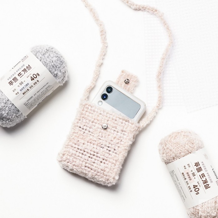 핸드폰 케이스는 ‘니팅 네트’ 를 이용하면 어렵지 않게 만들 수 있다. ‘니팅 네트’ 를 원하는 도안 크기대로 자른 후 ‘푸들 뜨개실’ 을 이용해 뜨개실을 엮어나가 만들면 핸드폰 케이스가 완성된다. 실을 2겹, 3겹으로 겹쳐 엮으면 더욱 도톰한 느낌을 낼 수 있다. 가방에 단추를 달고 싶다면 ‘스냅 단추’ 를 이용해 덮개를 만들어주는 것도 좋다.
