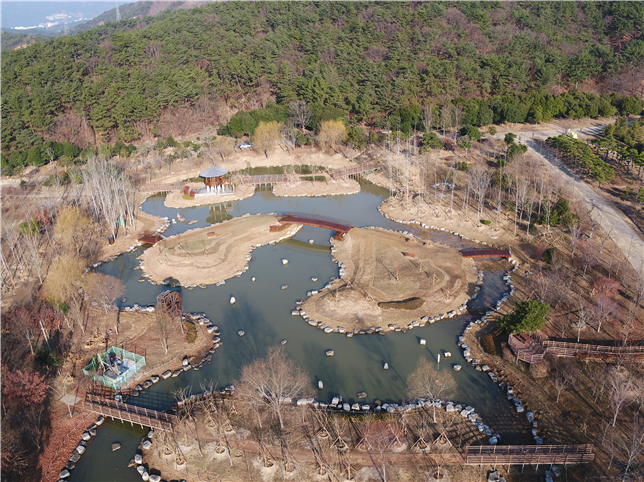 '연못과 나무사이를 거닐며 새소리와 함께 자연과 하나 되는 공간'을 모티브로 은사시나무, 팥배나무 등 5백여 그루 나무와 꽃창포, 갯버들 등 3만 본의 초화 만나볼 수 있어