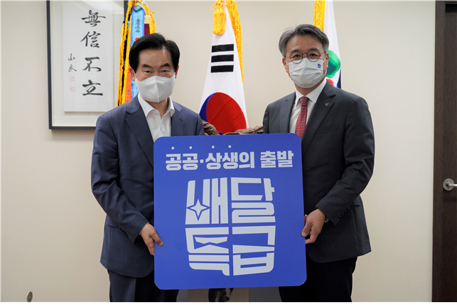 경기도주식회사는 지난 2일 의정부시청에서 이석훈 경기도주식회사 대표이사와 안병용 의정부시장이 면담을 갖고 배달특급 활성화 방안에 대해 논의했다고 3일 밝혔다.