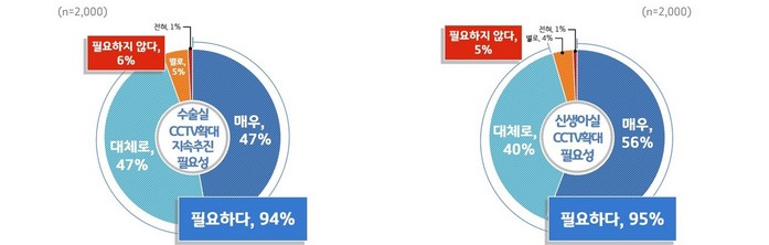 도의 민간의료기관 수술실 CCTV 설치·지원 사업, 수술실 CCTV 입법화 촉구 등 수술실 CCTV의 지속적인 확대 추진에 대해 94%가 ‘필요하다’고 응답했다.