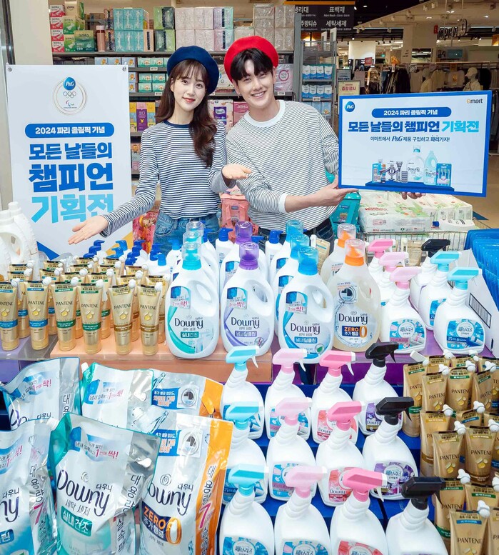 3일 서울 광진구 이마트 자양점에서 모델들이 한국P&G ‘모든 날들의 챔피언’ 기획전 제품을 둘러보고 있다. 월드와이드 올림픽 파트너 P&G가 오는 13일까지 전국 주요 이마트 매장에서 진행하는 이번 기획전에는 질레트, 오랄비, 다우니, 페브리즈, 헤드앤숄더 등 P&G 인기 브랜드가 대거 참여한다. 기획전 제품 구매 고객을 대상으로 할인 혜택을 제공하며 일부 매장에서는 500만 원 상당의 해외여행 상품권, 국내 5성급 호텔 숙박권 등의 경품을 증정한다. 한국P&G 제공