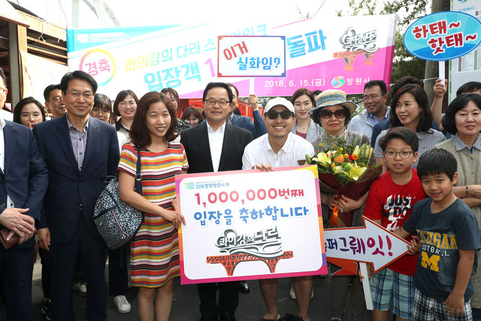 100만 번째 입장 영광의 주인공은 미국에 살면서 휴가차 한국 여행을 온 최준오(38, 미국 뉴멕시코주)씨네 가족이다. 아내와 두 아들과 함께 마산합포구에 사는 이모님을 찾아왔다가 콰이강의 다리에 들렀는데 뜻밖에 행운의 주인공이 된 것이다.