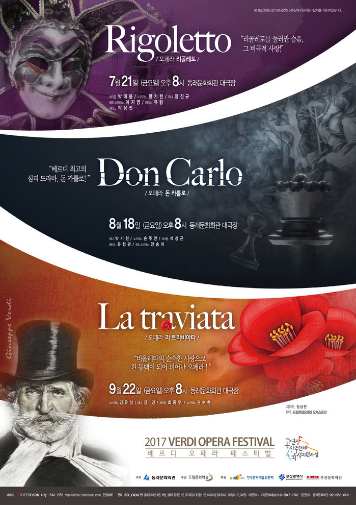 오는 21일 리골레토(Rigoletto)를 시작으로 8월 18일 돈 카를로(Don Carlo), 9월 22일 라 트라비아타(La traviata) 공연이 매달 1편씩 동래문화회관 대극장 무대에 오른다.