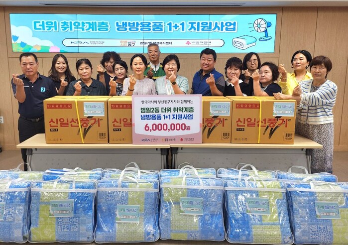 이번 지원은 한국마사회 부산동구지사가 지원금 600만원을 통해 진행되었으며, 선풍기와 여름이불(인견) 50세트를 저소득 취약계층 50세대에게 전달하며 안부 확인도 함께하는 뜻깊은 시간이었다.