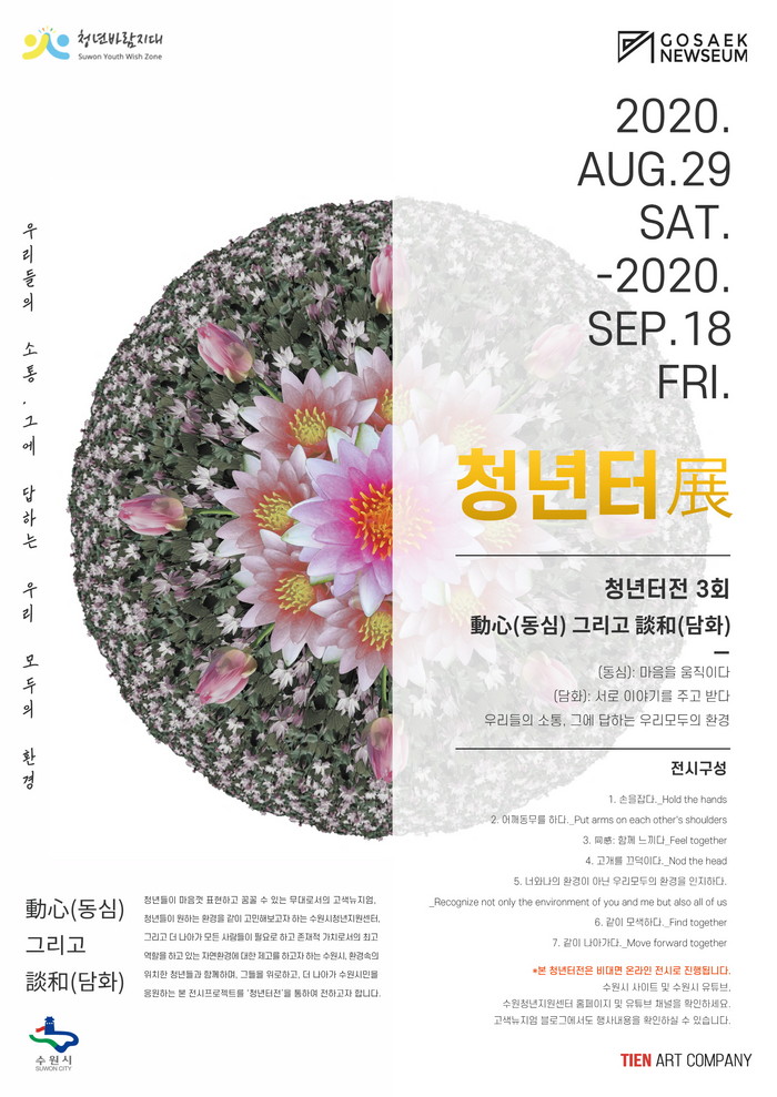 전시기획자 천지수 티엔아트컴퍼니 대표는 “이번 전시회를 준비하며 수원 청년들과 함께 우리의 터전, 환경에 대해 고민했다”며 “전시회를 온라인으로 진행할 수 있게 도와준 수원시청년지원센터에 감사드린다”고 말했다.