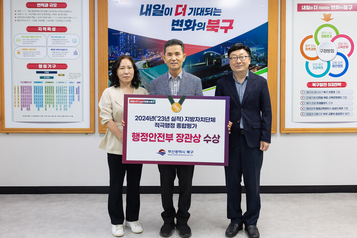 [로컬세계 부산=맹화찬 기자]부산 북구는 행정안전부가 주관하는 ‘2024년(23년실적) 지방자치단체 적극행정 종합평가’결과 우수기관 선정 및 행정안전부 장관 표창을 수상했다고 17일 밝혔다.