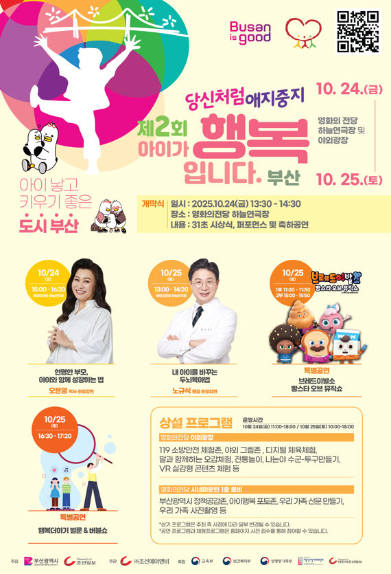 [로컬세계 = 전상후 기자] 부산시는 24일과 25일 양일간 영화의전당 하늘연극장 및 야외광장에서 저출생 대응 캠페인 당신처럼 애지중지 '제2회 아이가 행복입니다. 부산'을 개최한다고 23일 밝혔다.