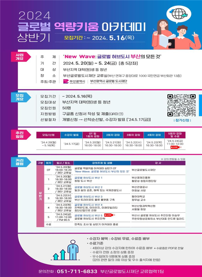 ▲부산시와 부산글로벌도시재단은 오는 16일까지 「2024 글로벌 역량키움 아카데미」 참가자를 모집한다. 관련 모바일 홍보 포스터. 부산시 제공 |