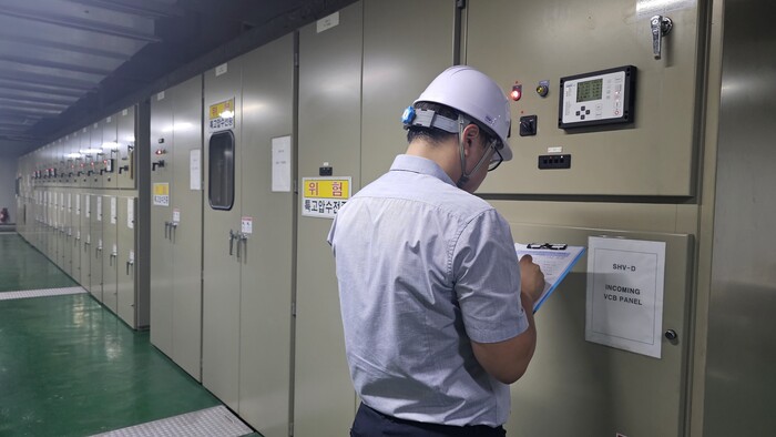 ▲ 시 관계자가 전력공급 설비를 점검하고 있다. 용인시 제공 |
