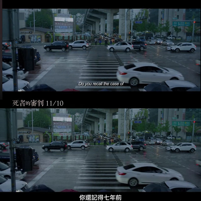 이어서 "7년 전 아들에게 전셋돈을 전해주려다 강도에 의해 목숨을 잃은 한 어머니의 안타까운 사건 기억하십니까?"라는 대사가 들리는 장면에서 각각 "Do you recall the case of a mother killed in a motorcycle robbery 7 years ago?", "你還記得七年前 一個母親在拿房租給兒子的路上 死於強盜殺人的案件嗎?"라는 자막이 등장해, 어머니가 강도에 의해 목숨을 잃은 것이 사실인지 영화에 대한 궁금증을 자아낸다.