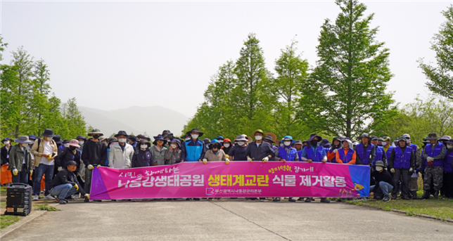 이날 행사에서 부산시, 낙동강본부, 부산환경시민연대, 자연보호사상구협의회, 1365자원봉사자, 동일고무벨트 직원 등 총 80여 명은 낙동강생태공원에서 서식하는 식물과 생태계교란식물 제거요령을 알아보고, 대규모 양미역취 뿌리뽑기 활동을 통해 생태계의 가치와 보전의 중요성을 시민들에게 알렸다.