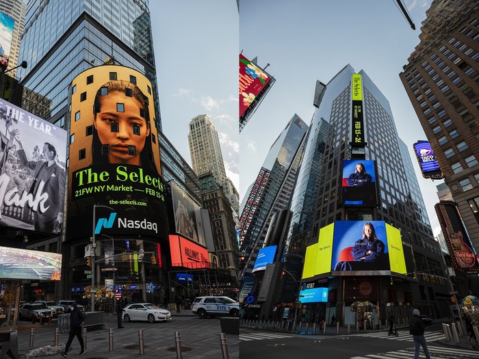 ▲‘더 셀렉츠(The Selects)’ 입점 브랜드 홍보를 위해 지난 2월 뉴욕패션위크 기간 중 입점 브랜드들의 컬렉션을 공개하는 광고를 뉴욕 타임스퀘어 전광판을 통해 선보였다.콘진원 제공 |
