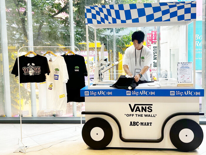 ’티셔츠 커스텀’ 프로모션은 외국인 관광객을 비롯해 유동인구가 많은 서울 명동 상권 내 ABC마트 매장에서 진행한다. 그랜드 스테이지 명동점, 스탠다드 매장 명동길점 등에서 반스 상품을 6만 원 이상 구매 후 그랜드 스테이지 명동중앙점을 방문하면 누구나 참여할 수 있다.