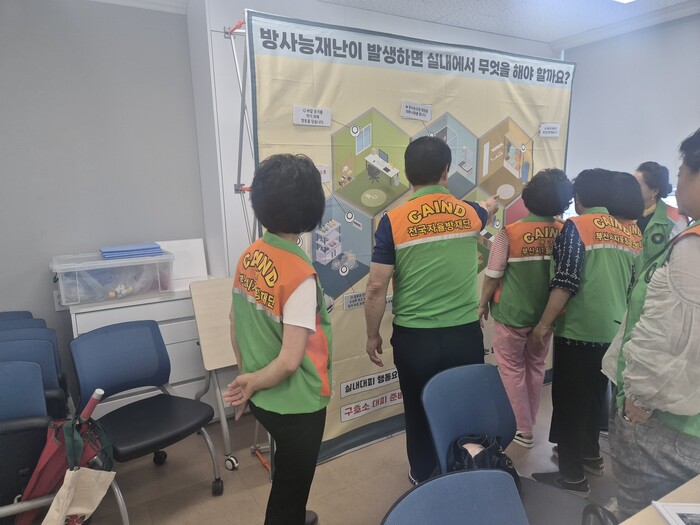 ▲ 부산 북구 구포2동 행정복지센터는 지역자율방재단과 함께 지난 19일 재난대응 역량강화를 위한 방사능 재난대비 안전교육을 실시했다.(북구 제공) |