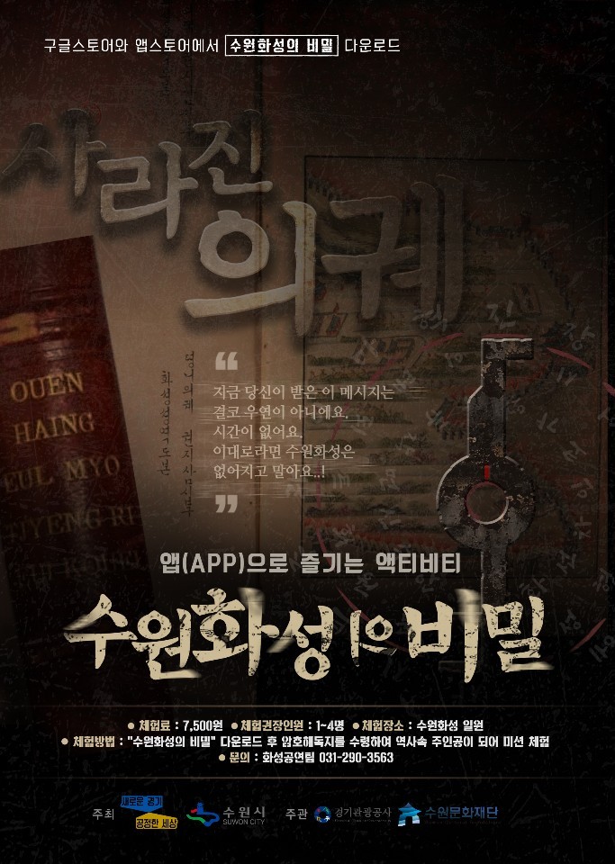 지난해 10월, ‘수원화성의 비밀Ⅰ-사라진 의궤’를, 올해 3월에는 ‘수원화성의 비밀 II, 정조이념록’, ‘수원화성의 비밀 III, 마지막 임무’를 출시했다. 구글 플레이스토어·애플 앱스토어에서 ‘수원화성의 비밀’을 검색해 앱을 내려받을 수 있다.