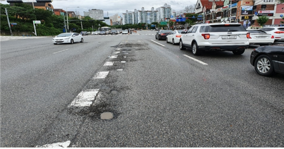 올해 8월 1일부터 15일까지 도내 포트홀 신고 건수는 5,429건으로, 지난해 8월 한 달 간 신고건수 2,849건의 약 2.0배, 올해 7월 한 달 간 신고건수 2,939건의 약 1.8배에 달할 정도로 폭증한 상황이다.