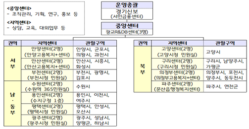 | ▲경기도 서민금융복지지원센터…12개센터(중앙1, 지역11), 상담사 25명 |