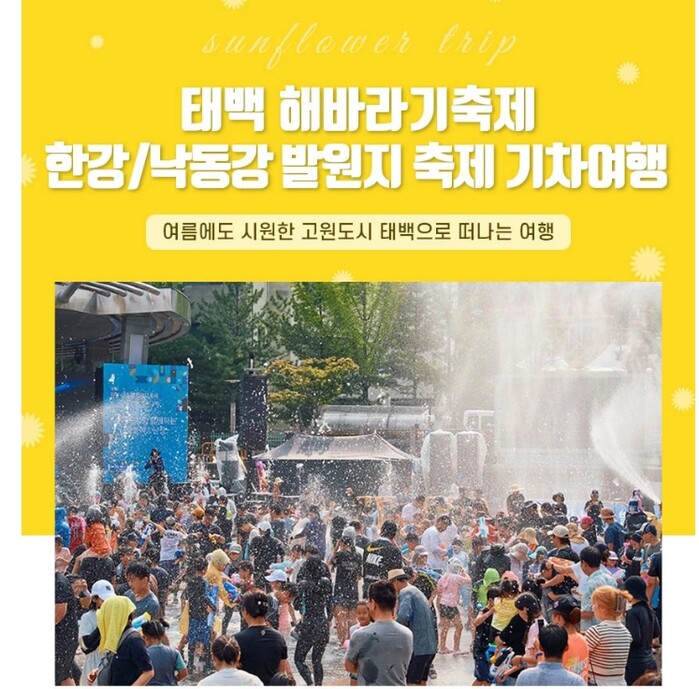 이번 여행상품은 태백의 대표 여름 축제 ‘한강·낙동강 발원지 축제’를 비롯해 고원지대에 드넓게 펼쳐진 6만여 평의 해바라기를 즐길 수 있는 ‘해바라기 축제’를 주요일정으로 포함하고 있으며, 태백의 주요 관광지와 로컬 맛집을 둘러볼 수 있는 1일 여행으로 구성돼 있다.