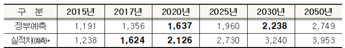 ◆김해공항 정부 예측(ADPi, 2016) 및 실적 비교
