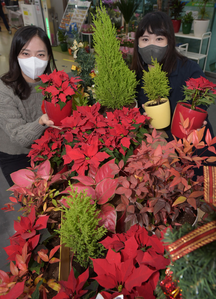 | ▲크리스마스가 보름 앞으로 다가온 10일 서울 서초구 청계산로 농협유통 하나로마트 양재점에서 모델들이 크리스마스 꽃 이라 불리는 ‘포인세티아’를 선보이고 있다. |