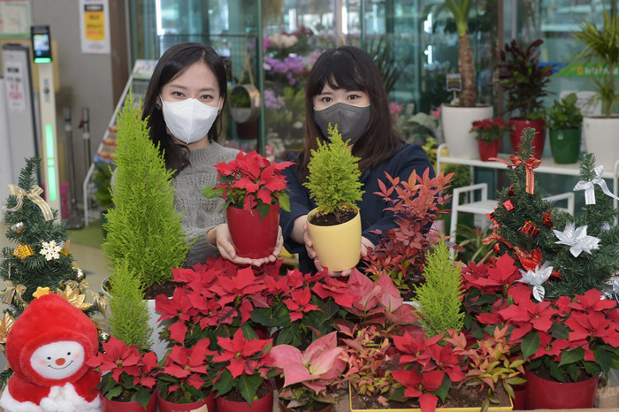 | ▲크리스마스가 보름 앞으로 다가온 10일 서울 서초구 청계산로 농협유통 하나로마트 양재점에서 모델들이 크리스마스 꽃 이라 불리는 ‘포인세티아’를 선보이고 있다.(농협유통 제공) |