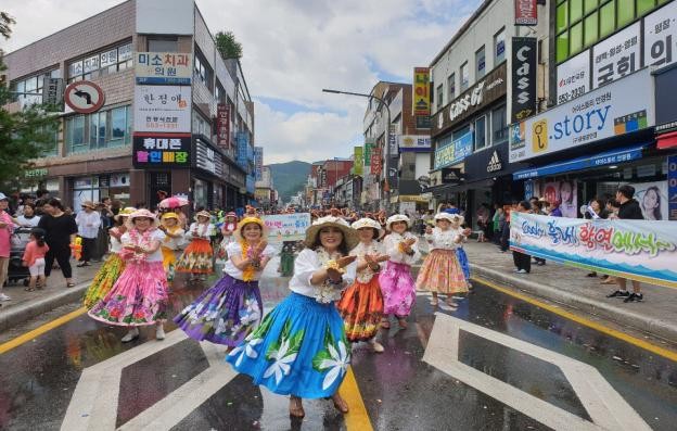 | ▲태백시 황연동 훌라댄스 동아리인 ‘푸아나니’ 거리공연 모습.(태백시 제공) |