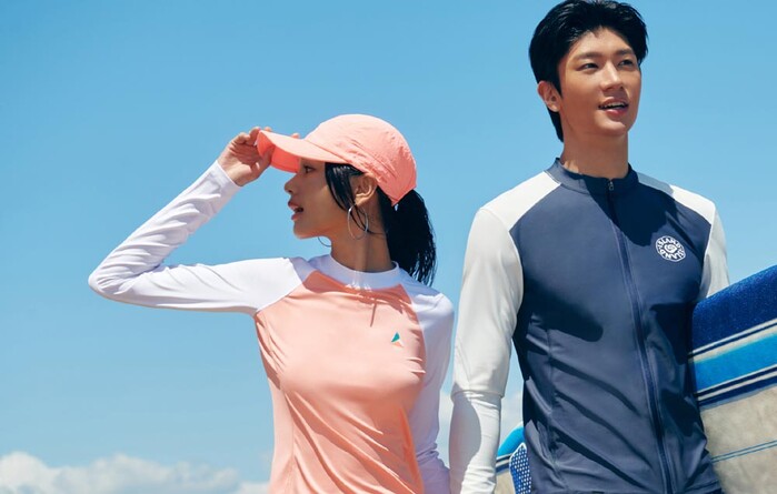 블랙야크는 무신사 쇼케이스로 공개한 ‘핫써머 컬렉션’을 통해 래쉬가드 라인을 출시했다. ‘워터래쉬가드풀집업’, ‘워터래쉬가드티’는 서핑 등 해양 아웃도어를 비롯한 다양한 물놀이 상황에 적합하도록 신축성이 탁월한 8-WAY 스트레치 원단과 뒷목이 자외선에 노출되는 것을 줄여주는 모크넥 디테일을 적용한 점이 특징이다.