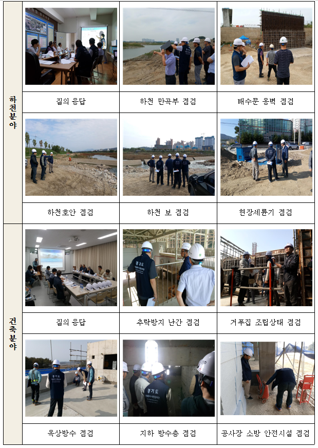 올해는 하남선 복선전철 4공구, 오포-포곡간 도로확포장 공사, 안산천 고향의 강 사업 등 총 26개 현장을 살폈으며, 단순 단속차원을 넘어 현장의 애로·건의사항을 청취해 이에 대해 조언하는 방식으로 활동이 이뤄졌다.