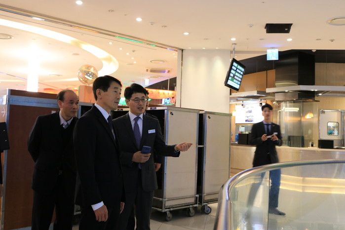 | ▲윤순중 부산소방안전본부장(왼쪽에서 두번째)신세계백화점 찾아 소방시설관리상태 설명듣다. |