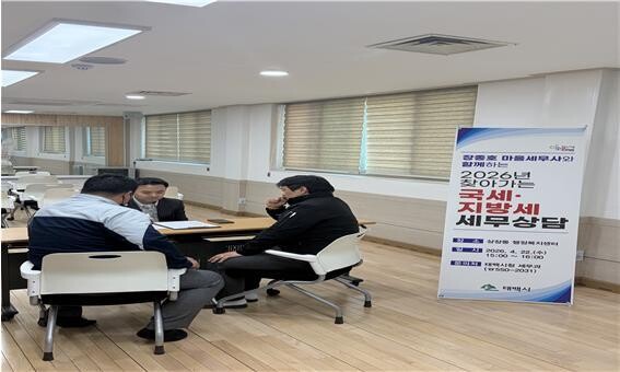 [로컬세계 = 박상진 기자]강원 태백시는 지난 22일 상장동 행정복지센터에서 장종호 세무사와 함께 국세‧지방세 무료 세무 상담을 진행했다고 23일 밝혔다.