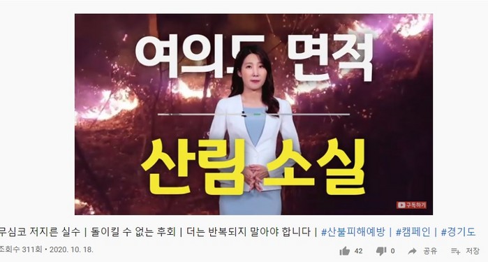 이밖에도 도민들에게 산불의 위험을 알리기 위한 ‘산불예방 홍보동영상’을 제작해 홈페이지, SNS 등에 홍보하고 있다. 관련 영상은 경기도청 유튜브 채널에서도 시청이 가능하다.