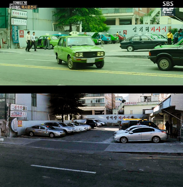 특히 영상 속 기사 식당 앞에 주차된 80년대 택시들은 과거로 돌아간 것 같은 볼거리와 재미를 선사한다. 2016년 실제 현장과 비교하면 택시의 기종, 간판, 벽면의 상호 등이 차이를 보인다.